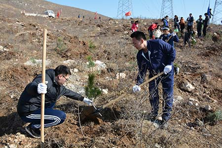 上午八時,東星集團志愿者在辦公樓門前集合,載上鐵锨、水桶等工具,一同前往活動目的地——大季家街道蘆洋村北山。在整個植樹的過程中,大家分工合作,刨坑、松土、提水、灌澆,一片熱火朝天的忙碌景象。經(jīng)過一個上午的共同努力,在分包區(qū)域共栽種樹苗130余棵。一棵棵樹苗傲然挺立,成為當天最美的風景。大家對小樹苗的茁壯成長充滿無限期待,盼望著這些栽下的樹苗能夠健康成長,長成參天大樹!
