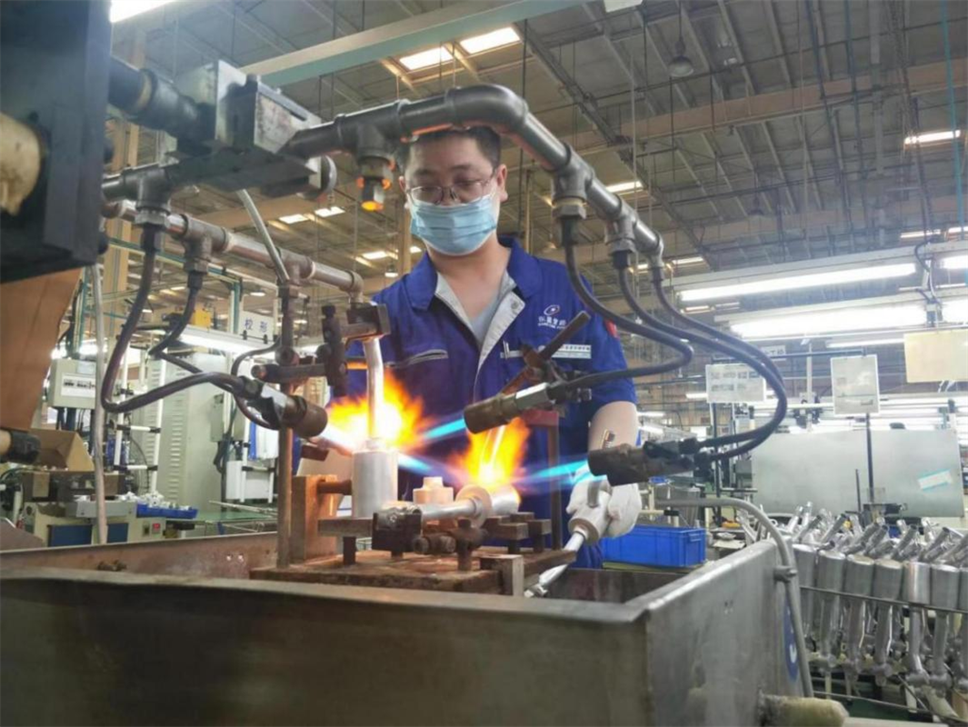 七月,酷暑時節(jié),酷熱難耐。此時,在煙臺東星空調(diào)管路有限公司(YDP)有這么一群人,正默默堅守奮戰(zhàn)在比天氣更為炎熱的工作崗位上,他們就是焊接班的75名員工。汽車空調(diào)管路焊接運(yùn)用的是火焰釬焊工藝,用2000多℃的高溫火焰進(jìn)行焊接。特點是產(chǎn)熱高、散熱多,尤其是自動焊機(jī),每個工位都裝有6—13個數(shù)量不等的槍頭。每天開班后,三十七個工位同時啟動,三百余條火舌從槍頭噴射而出。頃刻間,焊接班的作業(yè)環(huán)境溫度便能迅速提高。焊接工序在管路加工中是極為重要的環(huán)節(jié),稍不留神就會造成不良返工甚至是廢品。為確保品質(zhì),每次熔接階段都需要工人們近距離觀察焊口狀態(tài),判定是否需要補(bǔ)火或退火。烈焰烤紅了他們的臉龐,汗水浸透了他們的衣裳,額頭的汗珠不時的滾入眼中,但他們也顧不得去擦,全神貫注的注視著焊口,為的是一次性焊出高質(zhì)量的產(chǎn)品。在這樣的環(huán)境下,只消十幾分鐘便會從頭到腳濕透,他們卻毫無怨言,日復(fù)一日地在這個崗位上揮汗如雨、默默堅守。在他們的不懈努力下,上半年焊接班保質(zhì)保量完成了251萬余件系統(tǒng)管的生產(chǎn)任務(wù)。