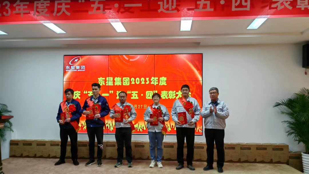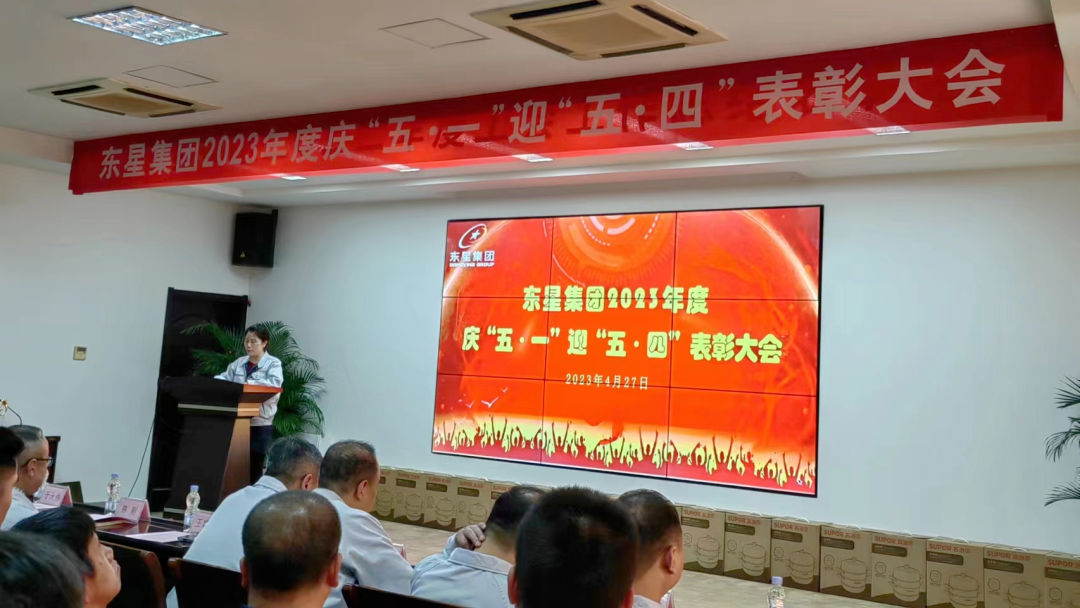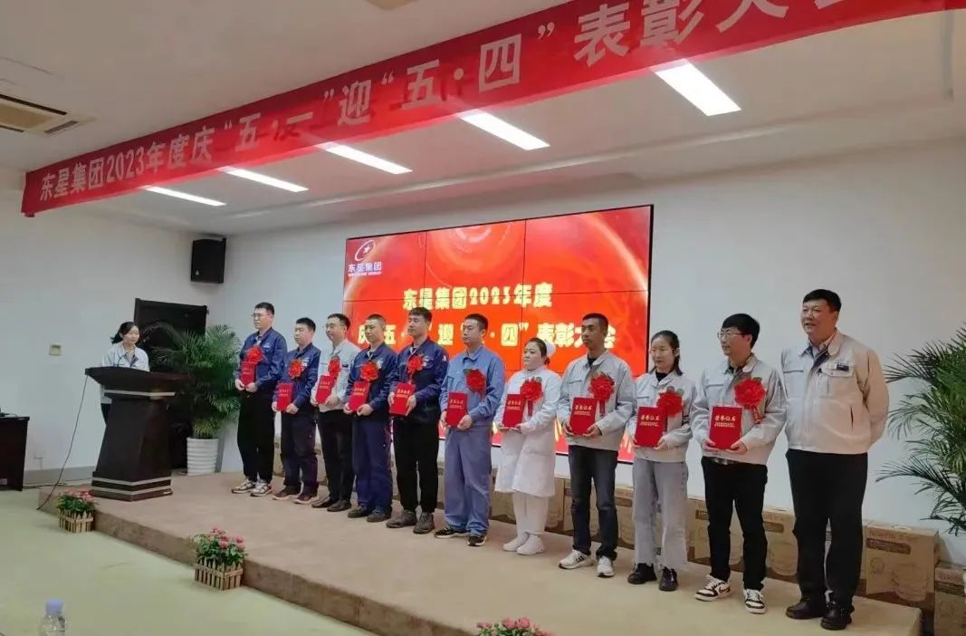 2023年4月27日下午,煙臺東星集團有限公司2023年度慶“五·一”迎“五·四”表彰大會在集團公司二樓會議廳舉行,集團公司董事長、總經(jīng)理于大偉出席會議并講話。集團公司副董事長、副總經(jīng)理厲強,集團公司副總經(jīng)理陳剛、王建全,各制造部和經(jīng)營單位領導、分會主席以及所有獲獎人員共計80余人參會。