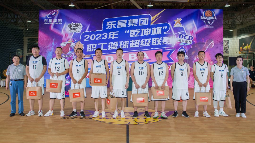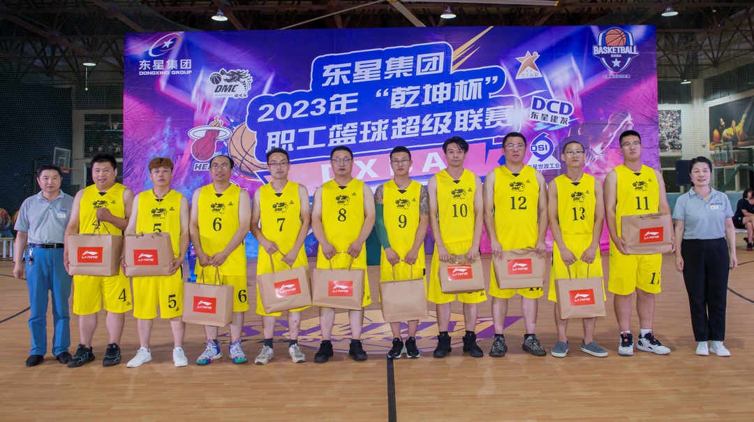 在頒獎環(huán)節(jié),集團公司副總經(jīng)理陳剛宣讀了東星集團2023年“乾坤杯”職工籃球超級聯(lián)賽獲獎團隊名單:星光隊、管路隊、YSD隊分獲冠、亞、季軍;YSM隊獲得第四名;皓風隊、夢幻隊、星石隊、夢之隊、建發(fā)電氣隊、熱火隊獲得優(yōu)秀獎;建發(fā)電氣隊獲得優(yōu)秀組織獎。集團公司董事長、總經(jīng)理于大偉,集團公司副董事長、副總經(jīng)理厲強,集團公司副總經(jīng)理陳剛,集團公司工會主席李金霞、集團公司人力資源部部長高克忠分別為所有獲獎球隊頒發(fā)了獎品。當于大偉董事長親手將“乾坤杯”交到星光隊隊長劉偉手中時,現(xiàn)場氣氛達到了高潮。