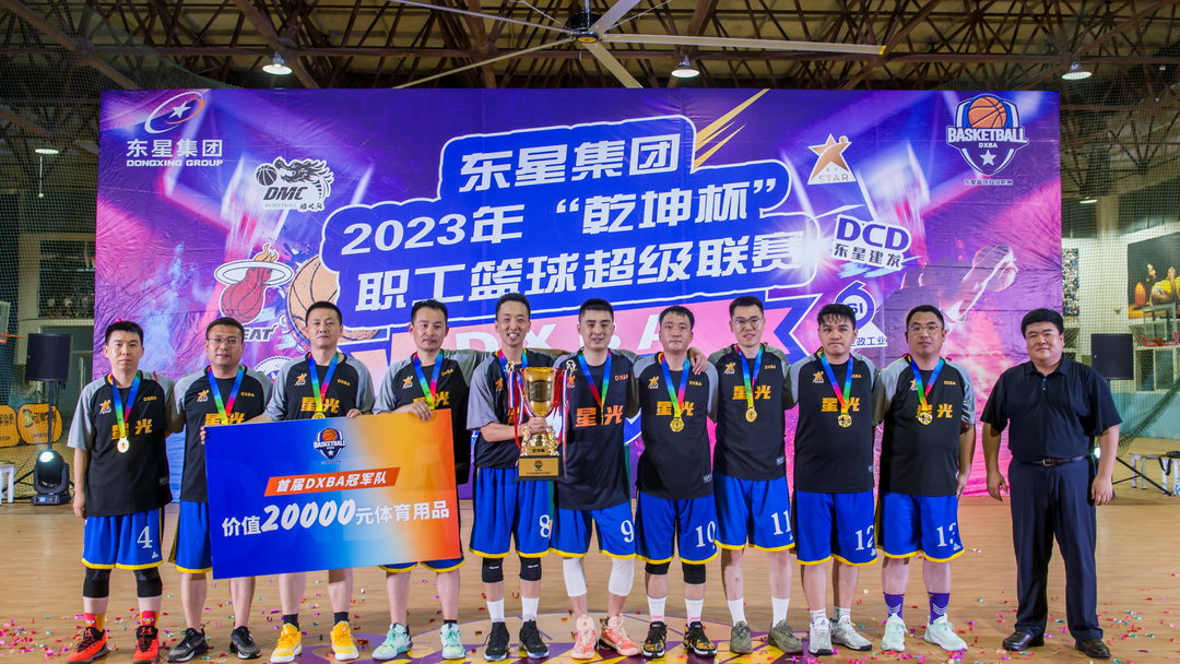 東星集團(tuán)首屆職工籃球超級聯(lián)賽(DXBA)落下帷幕,賽前不被看好的星光隊(duì)以乾組第二名的成績出線,最終力壓YDP、YSM及YSD等一眾強(qiáng)隊(duì)強(qiáng)勢捧起乾坤杯。