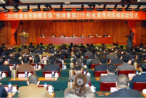 3月31日上午,“2011年度全市納稅百強”授牌暨第21個稅收宣傳月活動啟動