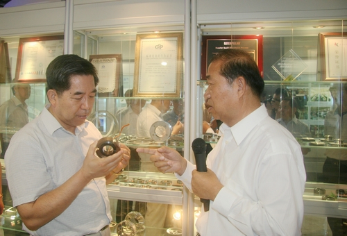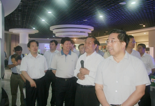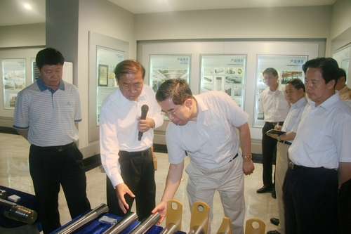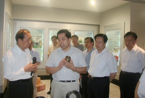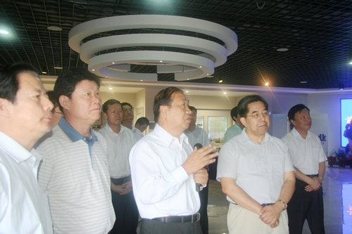 上圖為馬建堂局長(右二)、賈萬志副省長(左二)聽取企業(yè)介紹