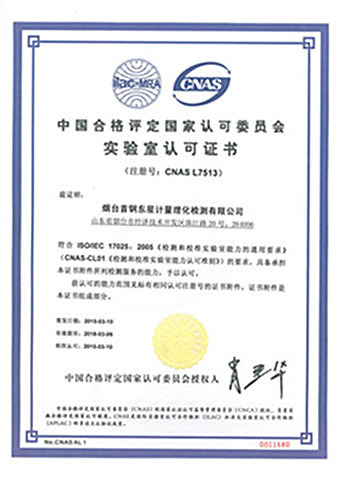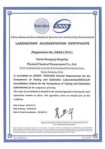 經(jīng)過東星計(jì)量中心全體人員的共同努力,于2015年3月10日通過了中國合格評(píng)定國家認(rèn)可委員會(huì)的全項(xiàng)評(píng)審,并獲得資質(zhì)證書。