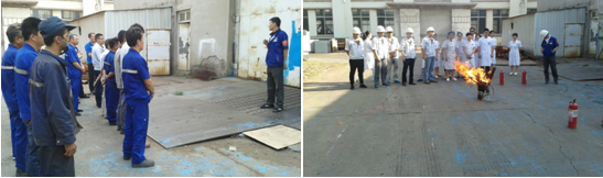 6月16日、6月18日,公司按照安全月活動(dòng)安排分別舉行兩次消防知識(shí)培訓(xùn)和滅火演練活動(dòng)?;顒?dòng)由生產(chǎn)管理部組織,生產(chǎn)管理部副部長(zhǎng)瞿亞?wèn)|強(qiáng)調(diào)了此次活動(dòng)的重要性。他在講話中指出:“預(yù)防為主、防消結(jié)合”是消防工作的總方針,我公司要對(duì)重點(diǎn)部位進(jìn)行嚴(yán)格管理,如;油庫(kù)、化工品庫(kù)、部門內(nèi)的可燃物、噴漆線等。要嚴(yán)格控制火源帶入嚴(yán)控部門內(nèi),對(duì)可燃物的數(shù)量、臨時(shí)線、可燃建筑物等不安全隱患進(jìn)行逐步改善。通過(guò)此次活動(dòng),使我們了解了在火災(zāi)真正來(lái)臨時(shí)如何確保我們的生命不受到危害,使我們的財(cái)產(chǎn)損失降至最低。隨后,對(duì)消防器材的使用、點(diǎn)檢和更換周期進(jìn)行了講解和培訓(xùn),對(duì)消防安全通道的重要性進(jìn)行講解,對(duì)火災(zāi)來(lái)臨時(shí)如何進(jìn)行報(bào)警、滅火、安全逃生進(jìn)行了培訓(xùn)。最后,各單位派代表共計(jì)70人進(jìn)行了兩項(xiàng)實(shí)戰(zhàn)滅火演練。