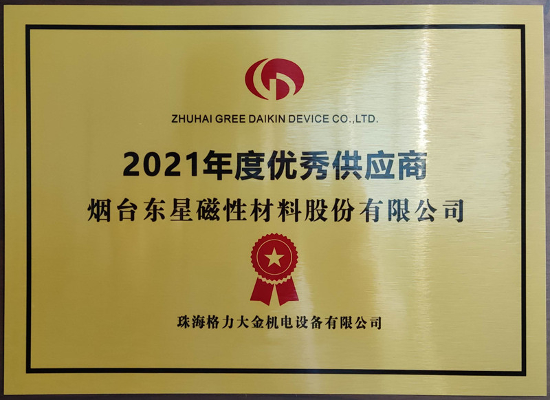 金秋九月、喜訊連連,煙臺東星磁性材料股份有限公司(YSM)在格力大金供應(yīng)商評選中喜獲“2021年度優(yōu)秀供應(yīng)商”榮譽稱號。