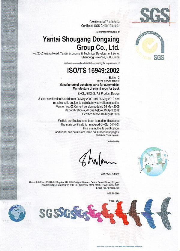 適宜性、有效性、充分性能得到較好保證。給予頒發(fā)ISO/ TS16949認證證書。