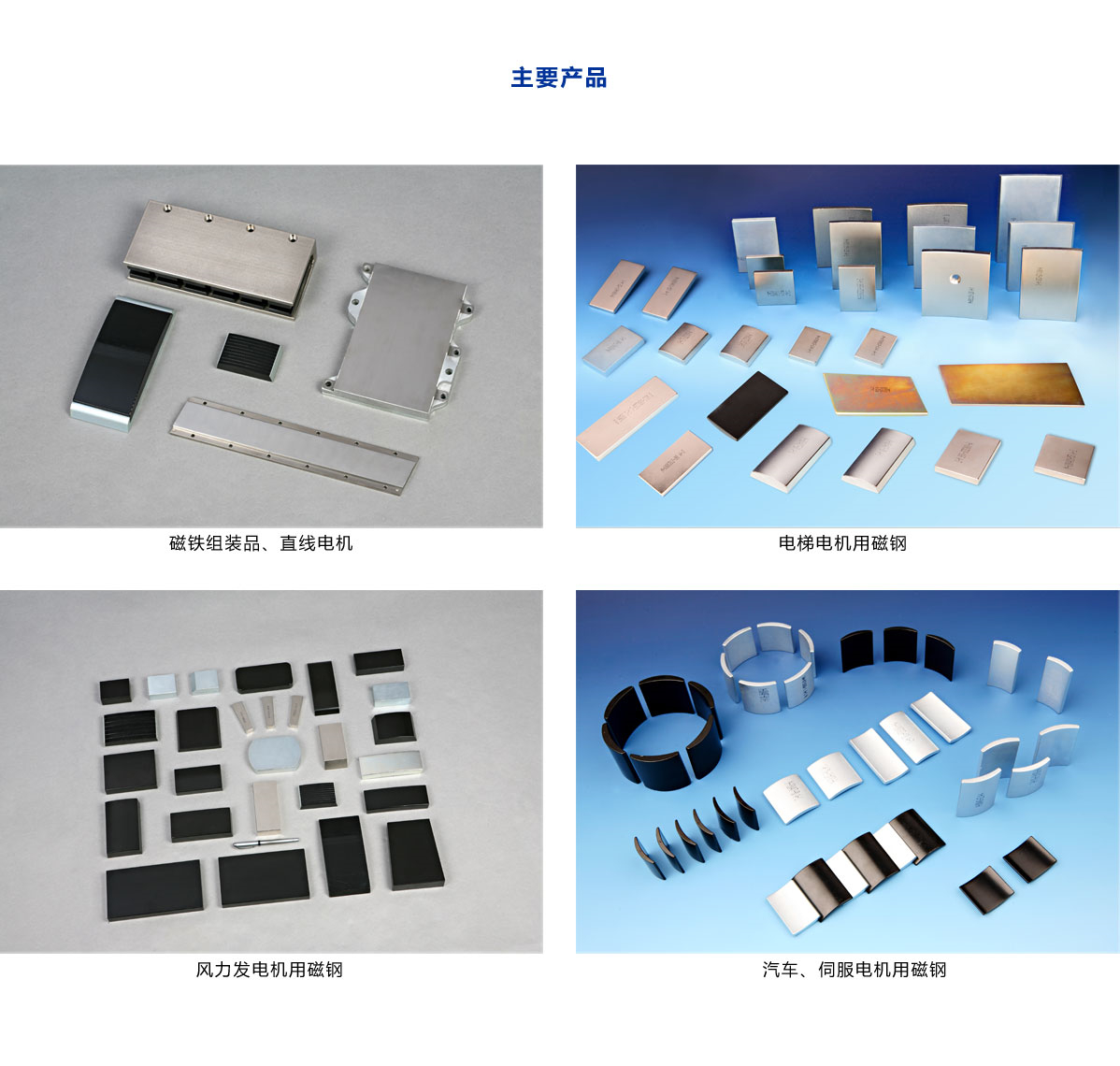 公司產(chǎn)品具有高性能,高使用溫度,高一致性,高耐腐蝕性,低失重的技術(shù)特點(diǎn),產(chǎn)品性能指標(biāo)達(dá)到國內(nèi)領(lǐng)先水平和國際先進(jìn)水平,被廣泛應(yīng)用于新能源汽車驅(qū)動(dòng)電機(jī),汽車轉(zhuǎn)向助力系統(tǒng)(EPS),變頻空調(diào)壓縮機(jī)電機(jī),電梯曳引機(jī)電機(jī),伺服電機(jī),直線電機(jī),大功率風(fēng)力發(fā)電機(jī)組,高端電聲部品,軌道機(jī)車牽引電機(jī),船舶用驅(qū)動(dòng)電機(jī)等高端科技領(lǐng)域。